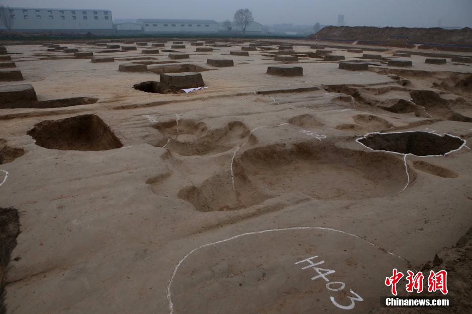 1月5日,河南郑州东赵发掘现场。 考古专家称,在东赵遗址新发现的“中城”,在迄今发现的二里头文化早期城址中面积最大。更为罕见的是,考古人员发现“中城”存在“婴儿奠基”现象。这种以人奠基的现象,在同时代的城墙修筑中极为少见。“中城”里还有疑似二里头文化时期城址的大型祭祀区:40多个祭祀坑排列基本有序,似有分组的可能,有的里面还有猪骨架和石铲。此外,考古人员还在“中城”里发现商代早期大型回字形宫殿建筑基址,面积超过3000平方米,这是目前郑州地区发现最大的、最完整的商代早期宫殿建筑基址。