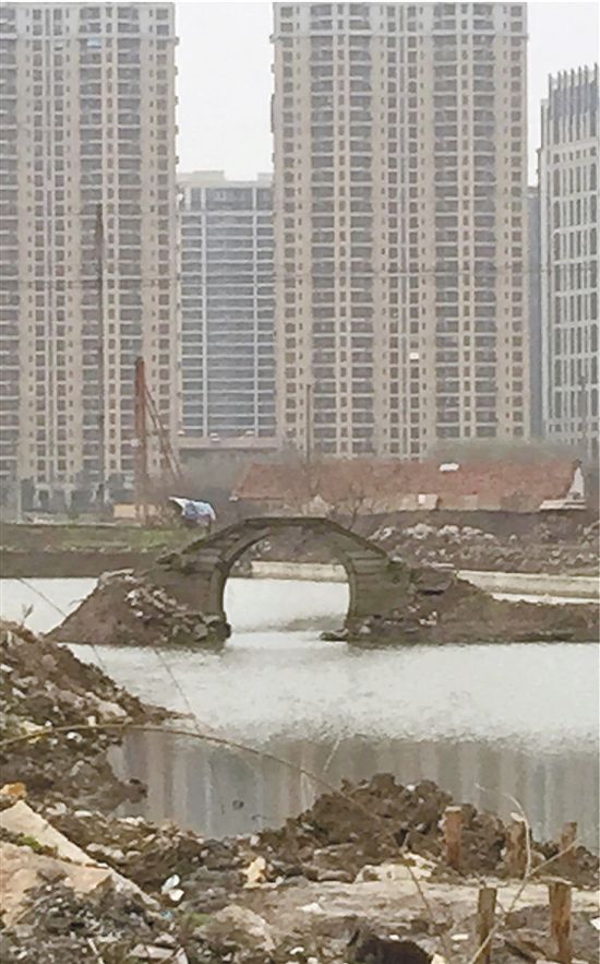 宽阔河道上,只剩下一座孤零零的石拱桥,被网友称做“钉子桥”。
