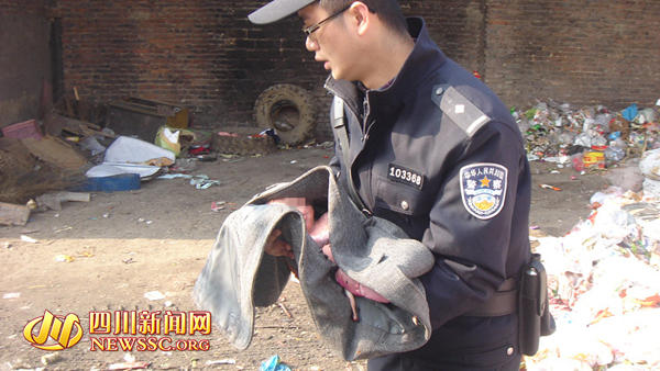 往垃圾堆中倒垃圾 发现一个被弃婴儿