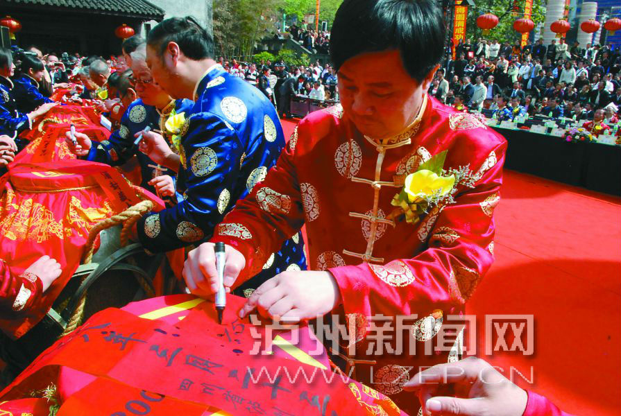 泸州老窖2009国窖1573封藏大典嘉宾合影留恋,社会知名人士龙永图、罗哲文等莅临大典