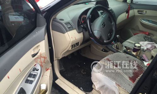 肇事车辆驾驶座上有多处血迹。