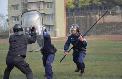 盾棍术是运用警棍盾牌进行攻防的一种格斗技术,在抵近接敌对抗中,能充分运用进可攻、退可守的灵活战术。