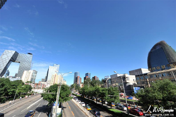 北京城雾霾散去迎晴空。(人民网记者翁奇羽 摄)