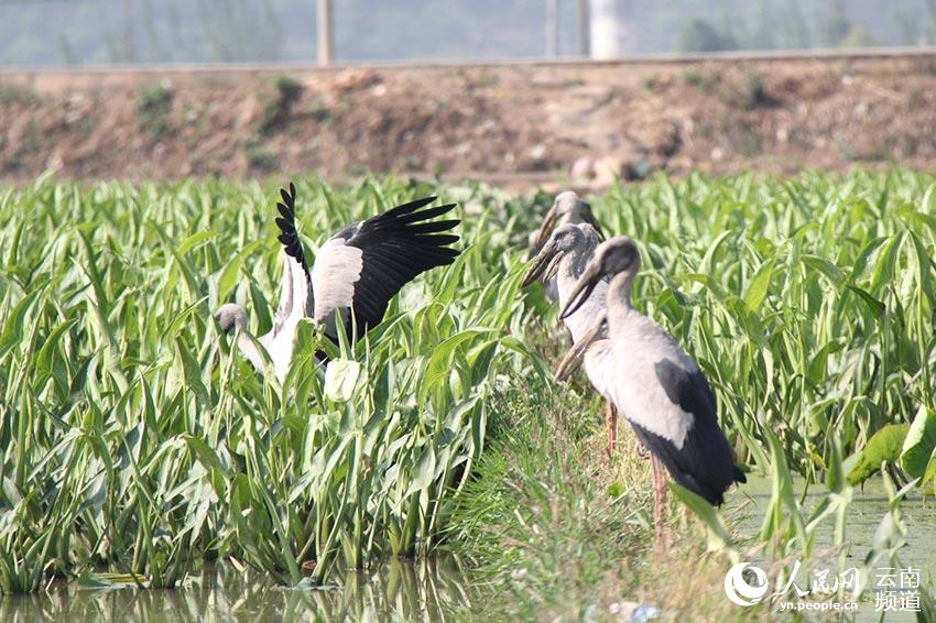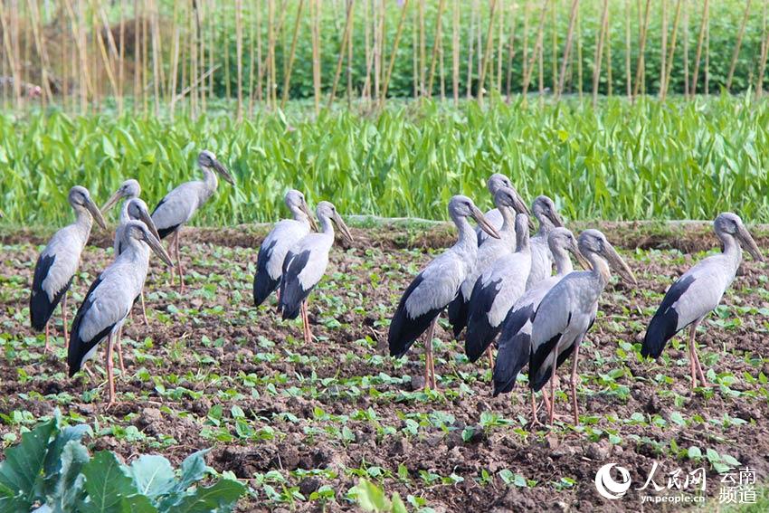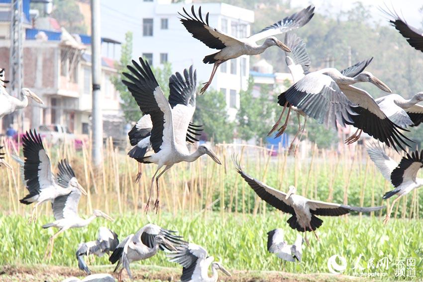 人民网峨山5月10日电 (李发兴)初夏的彝乡峨山,正是农忙时。与往年农忙时节不同的是,在田间地头,觅食的钳嘴鹳与人和谐共处的场景比比皆是,成为时下一道独特而靓丽的风景。