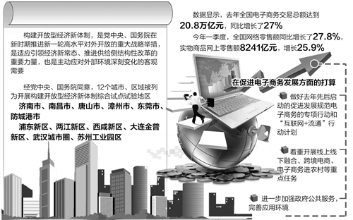 沈丹阳还介绍了商务部今年在促进电子商务发展方面的打算。数据显示,2015年全国电子商务交易总额达到20.8万亿元,同比增长了27%。在这个基础上,今年一季度全国网络零售额同比增长了27.8%,实物商品网上零售额8241亿元,增长25.9%,占社会消费品零售总额比重为10.6%。数据说明电子商务在前几年高速增长的情况下,今年继续保持良好的发展势头。今年,商务部将继续加大政策支持力度,做好相关促进工作。一是做好去年先后启动的促进发展规范电子商务的专项行动和“互联网+流通”行动计划;二是着重开展线上线下融合、跨境电商、电子商务进农村等重点任务;三是进一步加强政府公共服务,完善应用环境。