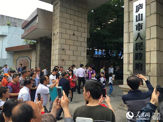 在庐山市挂牌成立之前,星子市民纷纷前往位于紫阳路的县政府和县委门前合影留念。
