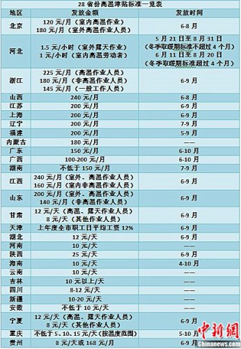 28省份高温津贴标准一览表 张尼 制