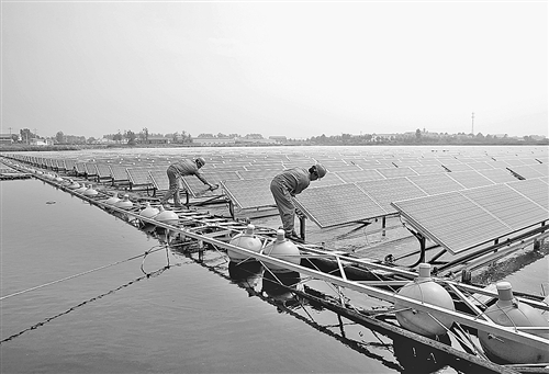 废弃窑坑有凹有凸、高低不平,如何改善?他们通过整体设计,将砖瓦窑的凹处的污水经过净化处理后,在水面上建立了容量达10兆瓦的漂浮式光伏发电站,年均发电1100余万千瓦时,年产值1000余万元。在水面下则进行多种鱼类养殖,建成了垂钓观光园。项目负责人高延华对记者说:“在炎热的夏季,水面上安装光伏板可降低水温,不但能有效阻止鱼类疾病爆发,还可调节其代谢能力使其快速生长,同时大大节约了土地资源,真正实现了渔业增产和节能减排两不误。”