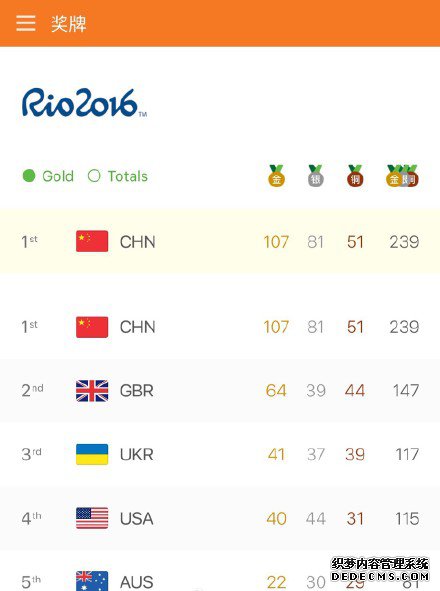 里约残奥会奖牌榜