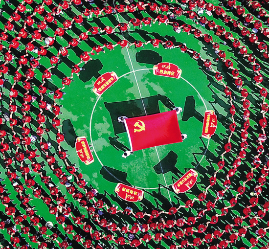 图为婺城区塔石乡开展“千名党员共画同心圆点亮心中永恒的党徽”主题大会。