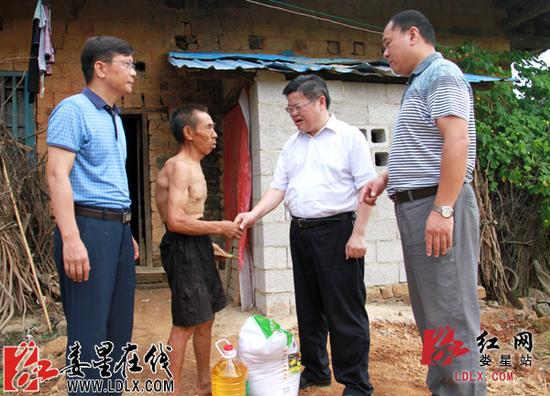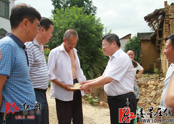娄底市娄星区委副书记、区长黄大生看望慰问受灾群众。