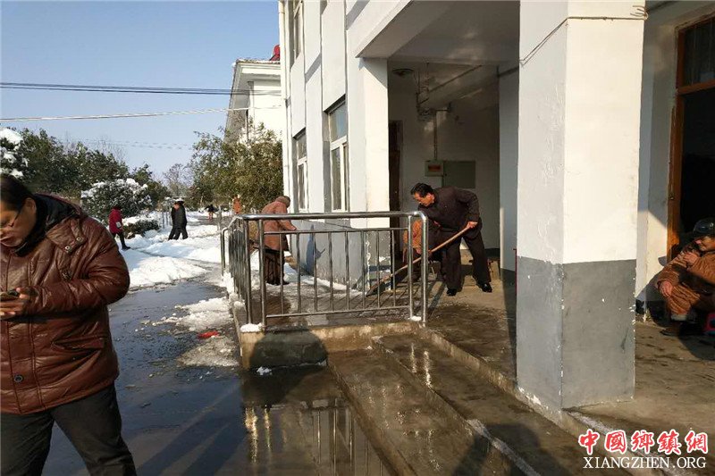 (中国乡镇网 安徽讯)1月26日上午,凤阳县大庙镇镇村干部在敬老院铲积雪、除冰块,为老人出行提供安全保障。在党员志愿者的感染下,群众们也自发地加入进来,加入到这一场温暖人心的扫雪行动中来。