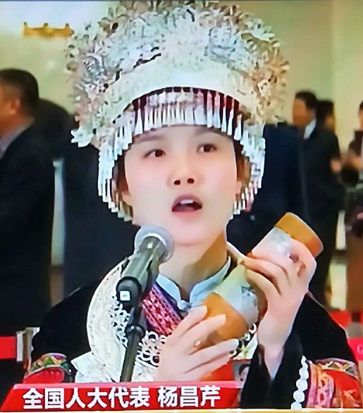 贵州赤水市的农民代表杨昌芹带着赤水市旅游产品竹筒杯亮相“首场通道”接受采访,乡村旅游发展的春光闪烁会场,茫射广阔天地!