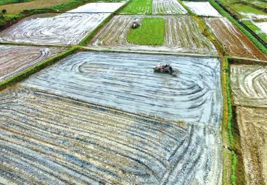 图为3月5日,邻水县一农业专业合作社的新型职业农民在翻耕托管的田地。