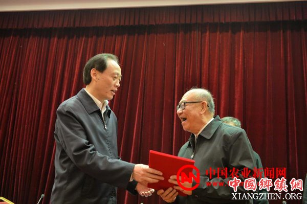 余欣荣副部长为中国工程院院士盖钧镒颁发证书。本网记者 叶晓宁 摄