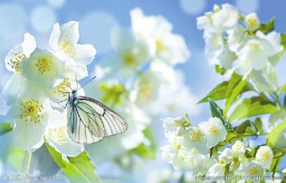 蝴蝶在盛放的梨花上停留。 (图据昵图网)