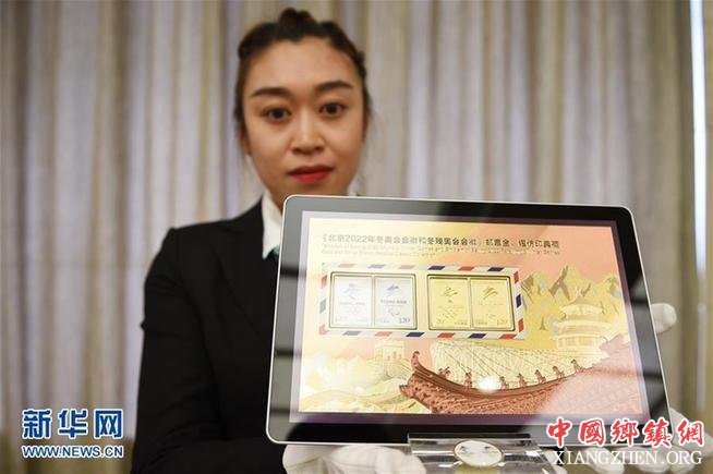 当日,由北京冬奥组委许可发行的《北京2022年冬奥会会徽和冬残奥会会徽》邮票纯金、银仿印特许产品在中国银行北京分行举行见面会,产品将同时在中国银行各营业网点、北京冬奥会特许商品零售店、北京2022特许商品官方网店和中国邮政网点面市。新华社记者鞠焕宗摄