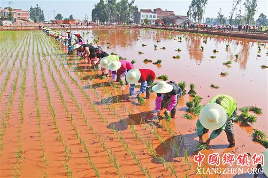 沙堤村组织全村党员、村民代表、妇女志愿者、青年志愿者等共400余人开展义务插秧劳动。村民脸上洋溢着笑容,唱着民歌小调在稻田里相互协作辛勤劳作,感受着劳动带来的快乐与光荣。