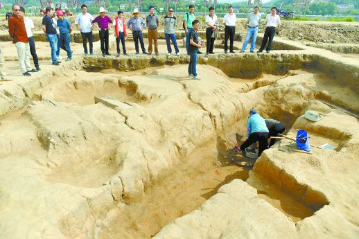 紧挨河岸的遗址呈斜坡状,地势从北向南逐步降低。遗址中分布有20多条沟,大多数相连,考古队据此判断是排水沟。其中一条大沟东西长超过100米、宽超过2米,几乎贯穿整个遗址。盛伟告诉记者,大沟以北遗迹比较丰富,反映当时的人类活动集中于遗址北部的地势较高处,2处房屋遗迹和4处窑址都在这里;大沟以南遗迹较少,水沟较多。因此,这条大沟应该兼具排水和规划空间的功能。