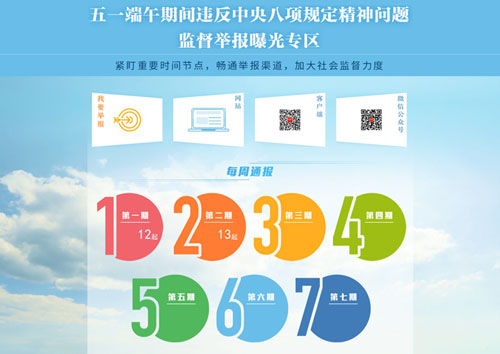 5月10日,中央纪委国家监委网站“五一端午期间违反中央八项规定精神问题监督举报曝光专区”通报了各地查处的13起违反中央八项规定精神问题。这是该专区开通“每周通报”以来的第二期集中曝光。
