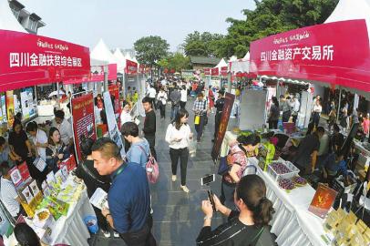 当日还同步启动了四川金融扶贫展。十余家金融机构联合其对口帮扶的贫困县展销了包括金阳乌洋芋、越西豆腐乳、汶川脆红李等特色扶贫产品,受到消费者热捧。展会将持续到9月29日。