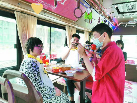 市民游客体验火锅巴士。