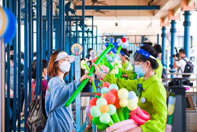 端午假期,上海海昌海洋公园为入园游客派发小礼物。受访者供图