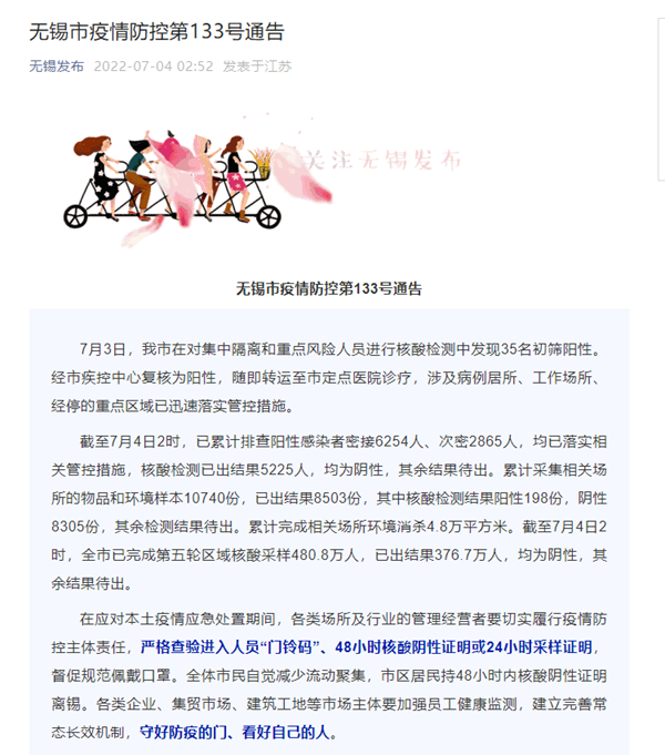 无锡市疫情防控第133号通告