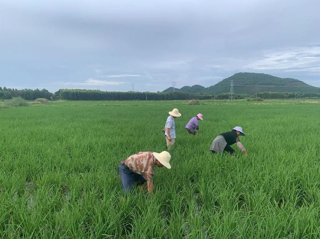 农民在田间开展除杂工作。新华社记者 罗江 摄