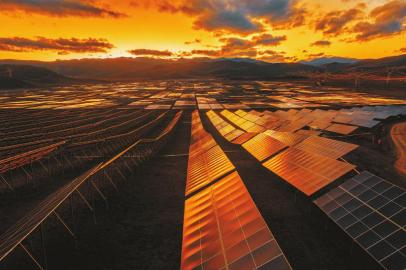 10月27日,清晨的第一缕阳光照射在甘孜州乡城县正斗乡顶贡大草原上。100多万块光伏板在这片海拔4000米的高原上依山势逐光而列,连绵起伏,远远望去像极了蓝色海洋。