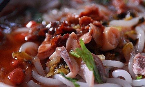 抱罗粉分干拌和汤捞两种,底料有猪肉、牛肉、猪肚等,加入店家自制的辣椒酱,味道鲜美,辣而不腻。吃抱罗粉最正宗的地方就是在路边摊,一边吃粉一边沉浸在海口的市井喧闹里面,也是一种体验。