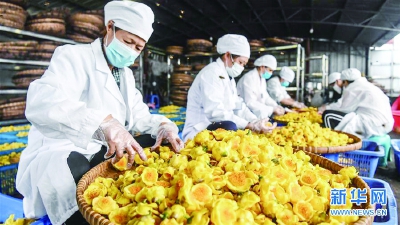 1月11日,工作人员在挑选金花茶。目前,广西合浦县一家种植基地内的金花茶进入采收季。该基地的金花茶种植面积有2000多亩,鲜花产量预计达到20万斤。