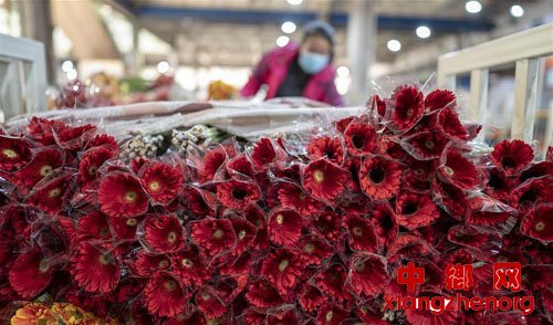 2月26日,商户在斗南花卉交易市场整理待售的鲜花。 新华社记者 江文耀 摄