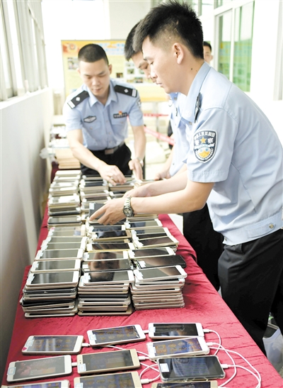 警方缴获的1007部涉案手机 记者 邱伟荣 摄
