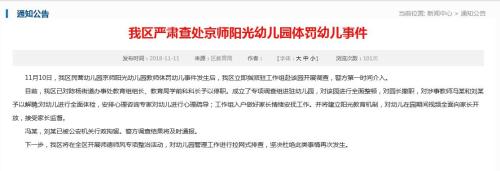 中新网11月11日电 近日,“一幼儿园多名幼儿午睡时遭老师打头部打手心”一事,引发社会广泛关注。今日,针对此事,陕西省咸阳市秦都区人民政府网站发布通知公告。公告透露,涉案老师冯某、刘某已被公安机关行政拘留。