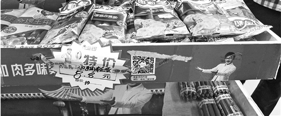 田某等人当时声称就是从这个货架上购买到了过期火腿肠。