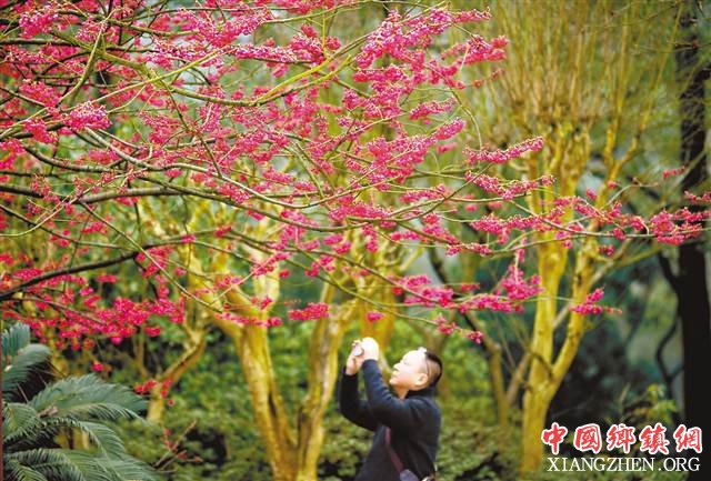 市民在南山植物园里观赏樱花。通讯员 王雄 摄