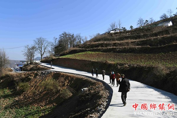 寻甸回族彝族自治县河口镇窑湾子村村民行走在通向村外的混凝土硬化路上(2月20日摄)。