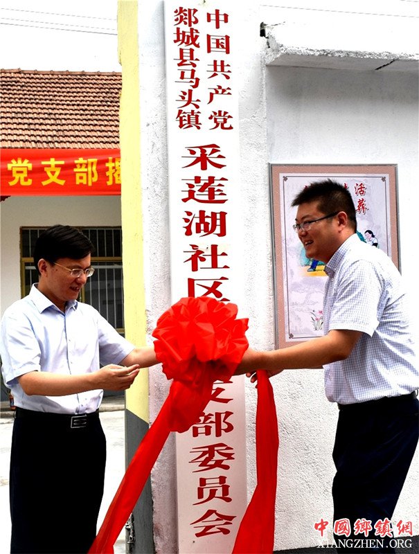 (中国乡镇网山东讯)7月4日,山东省郯城县委副书记韩浩(左)与马头镇党委书记张玉安(右)为采莲湖社区科技支部委员会揭牌。至此,郯城县马头镇采莲湖社区科技支部委员会正式投入使用,42名党员有了自己的“家”。