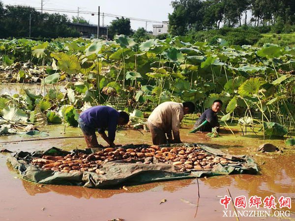 在产业振兴方面,南雄要求一镇发展一特色农业产业。图为古市镇千亩莲藕迎来丰收。