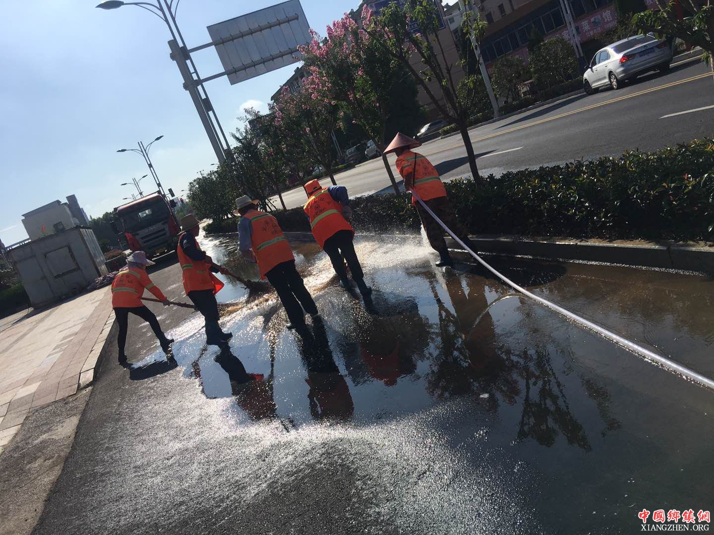 一是扎实开展市容环境专项整治工作。采取“齐抓共管,整体联动”的方法重点整治了该镇范围内占道、出店经营、流动摊点、夜市排挡和露天烧烤等问题,规范了流动水果车、蔬菜车,禁止随意停靠的销售行为。城管中队集中力量,对露天烧烤和夜市排档进行拉网式、地毯式巡查。通过定点值守、车辆巡查等方式,做到问题及时发现、及时处理;二是全面开展了小区环境卫生专项整治工作。彻底清理了各类积存的建筑和生活垃圾,楼道和院内堆放的杂物,清除各类小广告,疏通沟渠。同时加大小区增绿护绿整治力度,对小区内绿化毁坏、绿植枯死、裸露地实行全方位绿化补植,同时追肥修剪,打造绿色生态小区。三是加大清扫保洁力度,保障卫生保洁全覆盖、无死角,确保垃圾随有随清,实现保洁区域墙到墙,全覆盖无缝隙。在重点区域增加保洁人员,延长保洁时间,特别是对建筑垃圾、卫生死角,每天早、晚不间断巡查,发现问题立即清理。增加扫路车、高压冲洗车等车辆的作业频率,洒水车、高压冲洗车对城区主要道路每日洒水3次以上,遇炎热天气适时增加洒水抑尘降温频次,遇阴雨天气加大对落叶密集处的清扫保洁力度,第一时间确保路面干净整洁。加大垃圾清运频率,确保生活垃圾日产日清和无害化处理,同时保证中转站及周边卫生干净整洁;四是深入开展“除四害”工作。重点对车站、农贸市场、城中村、城乡结合部等区域进行治理,动员群众开展家庭卫生大扫除,铲除蚊虫孳生环境,并对绿化带、下水道等蚊虫易孳生地进行药物喷雾消杀。在每月16-20日集中灭鼠时间,组织专人落实灭鼠投药工作,在老鼠容易出没的墙角、水沟边、垃圾房、下水道以及每个楼栋的毒饵站进行了鼠药的投放,并对损坏、缺失的毒饵站进行了修复和补充,确保鼠药投放全覆盖。