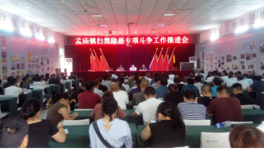 (中国乡镇网河南讯)为进一步推动扫黑除恶专项斗争向纵深发展,8月29日上午,孟庙镇再次召开由全体镇干部、30个行政村“两委”干部等240多人参加的扫黑除恶专项斗争推进会。