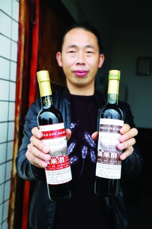 新店镇鸭甸河村用桑葚深加工制成的果酒。