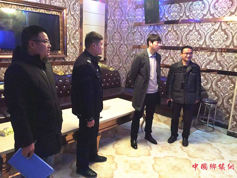 图为龙扬镇安监所、派出所、安监所和文化站对龙扬音乐会所进行安全生产检查和文化经营场所专项整治。