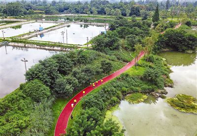成都龙泉山城市森林公园党工委、管委会相关负责人介绍,2018年,坚持以丹景台景区综合提升等重大示范性项目建设为引领,建成森林绿道216公里,全面完成年度目标任务。同时,大力推动森林绿道环湖、沿河、绕山、穿林,加快构筑“绿道环”、串联“公园链”、连通“河湖网”。