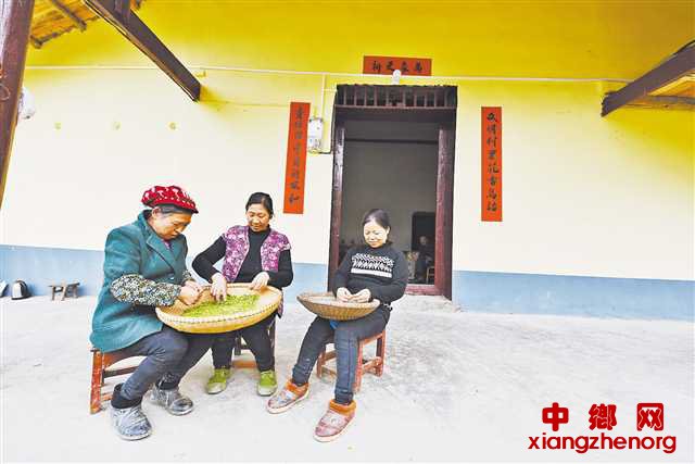茶叶采购回家后,村民们正忙着选茶。