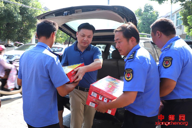 (中乡网安徽讯) 立秋虽至,高温难挡。一线干部职工顶烈日、冒酷暑仍然坚守工作岗位。7日下午,和县乌江商会领导班子成员一行深入乌江治超站、派出所、交警队、乌江法庭、行政执法局等单位,慰问坚守高温一线的干部职工,为他们送去清凉饮料、毛巾、月饼等价值3万元的防暑降温物品。乌江镇镇长杨永前、统战委员许俊等陪同慰问。