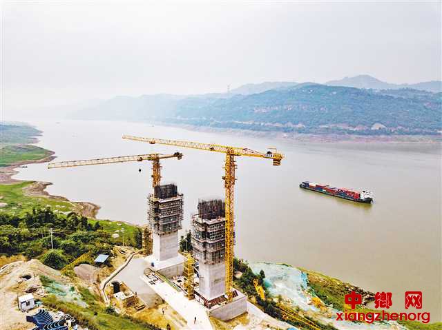 9月7日,万州区新田长江大桥南岸工地,主塔工程正在加紧施工。