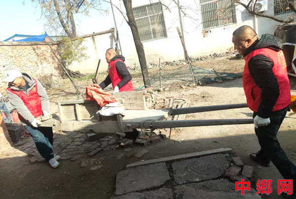 活动中,志愿者们身着红色马甲,找来板车、扫帚等工具,将指挥部旧址屋内杂物搬运至指定位置分类存放,并将旧址内外及院落所有杂草、垃圾进行了彻底整治清运。退役军人志愿者不怕脏、不怕累,不放过任何一个卫生死角,经过近2个小时的努力,农民武装暴动指挥部旧址焕然一新。