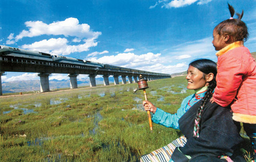 青藏铁路被誉为“天路”,是世界海拔最高、高原线路里程最长、自然环境最为恶劣的铁路,建设青藏铁路是人类铁路建设史上的伟大壮举,结束了西藏没有铁路的历史。青藏铁路通车,促进了西藏的特色农牧业、藏药业、旅游业的发展,给居住在青藏高原上的各族群众带来了更多的市场机遇。